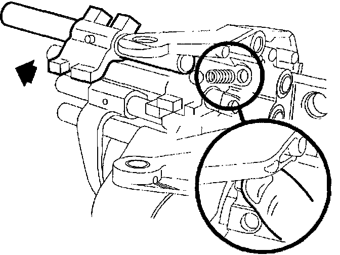 8. Install 5th detent spring and ball. Compress ball and spring and install 5th shift shaft. Place shaft in neutral position.