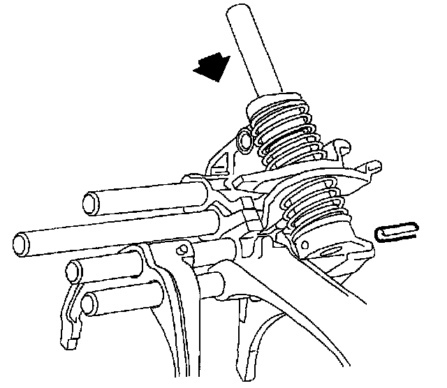 3. It any shift forks, shift shafts, or shift shaft blocks were disassembled, reassemble shift shafts by driving new retaining pins into shift forks or shift shaft blocks.
