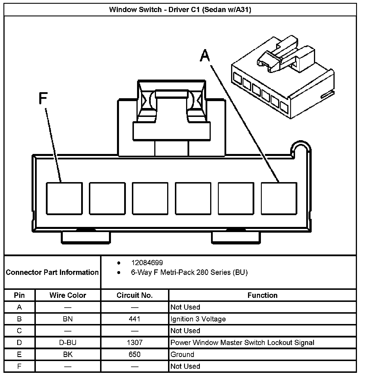 Window Switch - Driver C1 (Sedan With RPO Code A31):