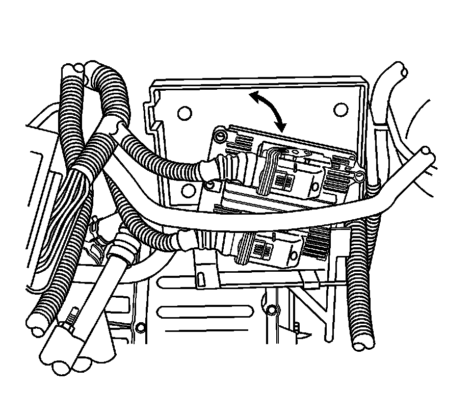 10. Remove the automatic transmission control module (TCM), if equipped, from the underhood electrical center bracket, and reposition the module with harness, toward the engine.