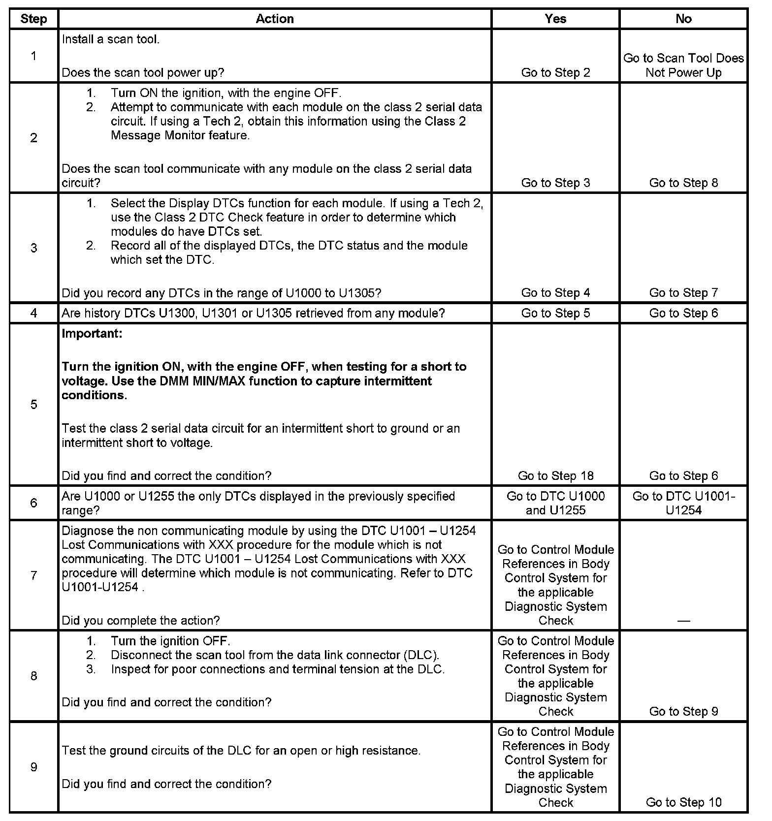 - A class 2 serial data circuit shorted to ground. A history U1300 will set in all modules. Refer to DTC U1300, U1301, or U1305. U1300 U1301 U1305