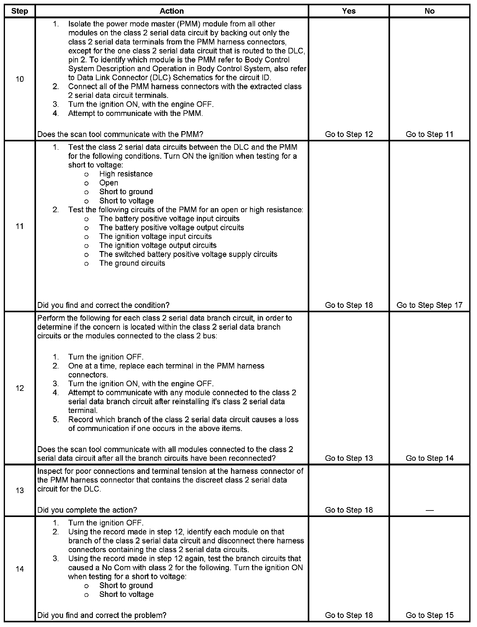 10. Normal class 2 serial data communication cannot take place until the power mode master (PMM) module sends the appropriate power mode message. If the PMM does not send a wake-up message, other modules on the class 2 serial data circuit may not communicate.