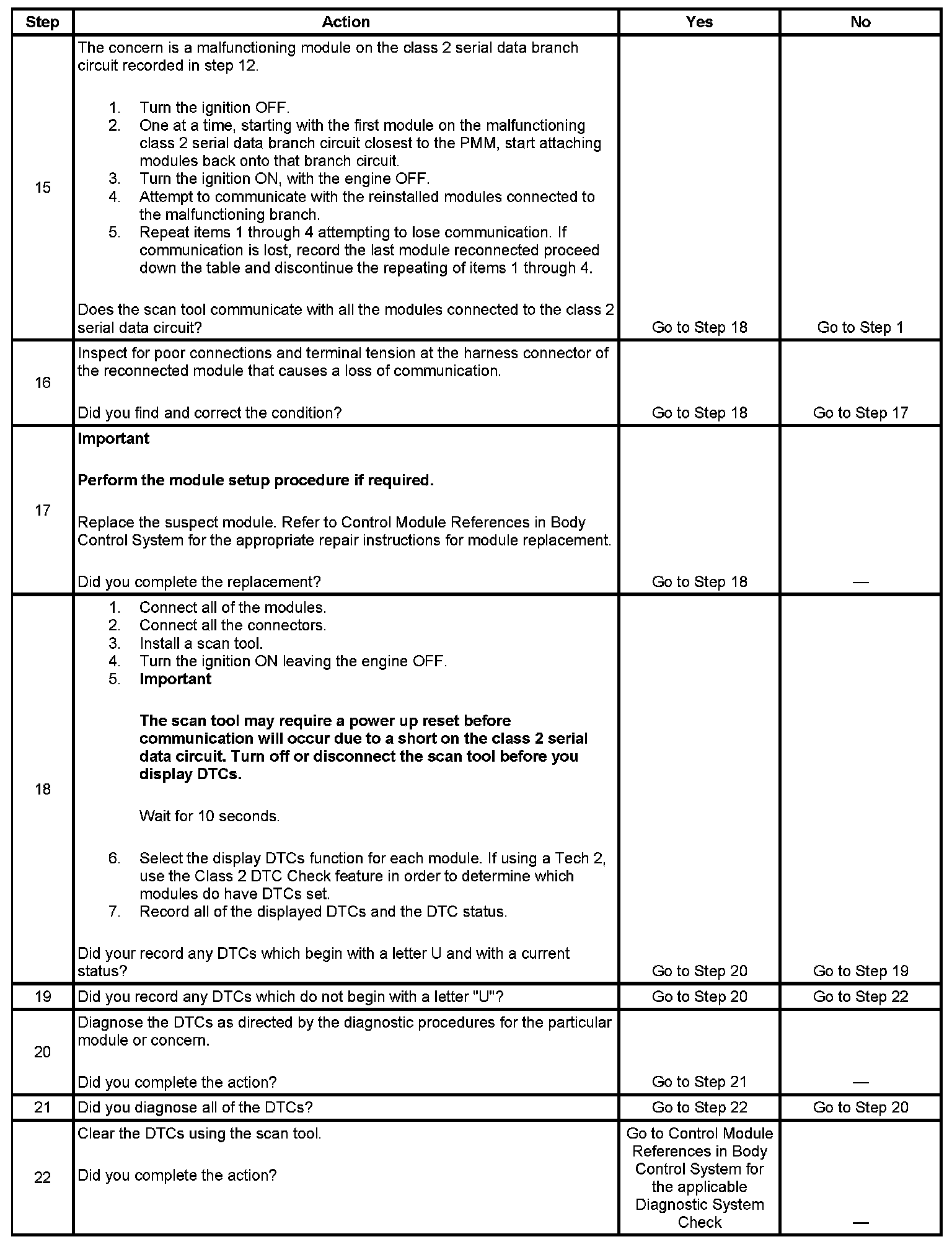 2. A partial loss of communication in the class 2 serial data circuit uses a different procedure than a total loss of communication of the class 2 serial data circuit.