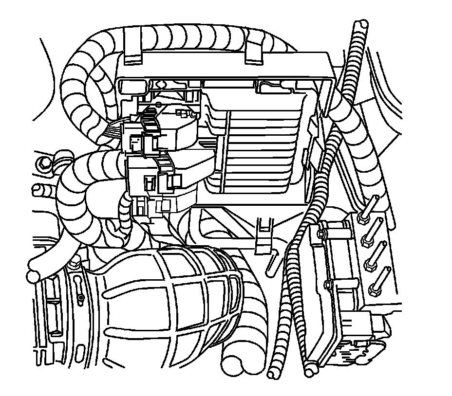 1. Use the retaining tab to secure the PCM, when installing the PCM to the underhood junction block bracket.
