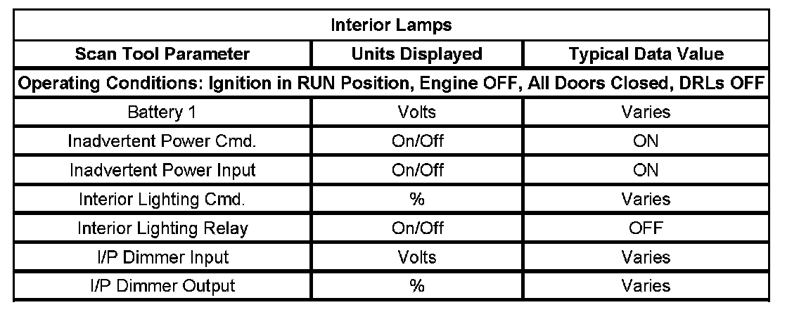 Scan Tool Data List - Interior Lamps