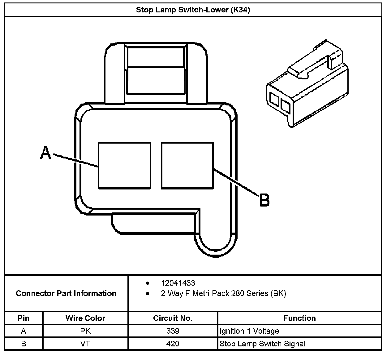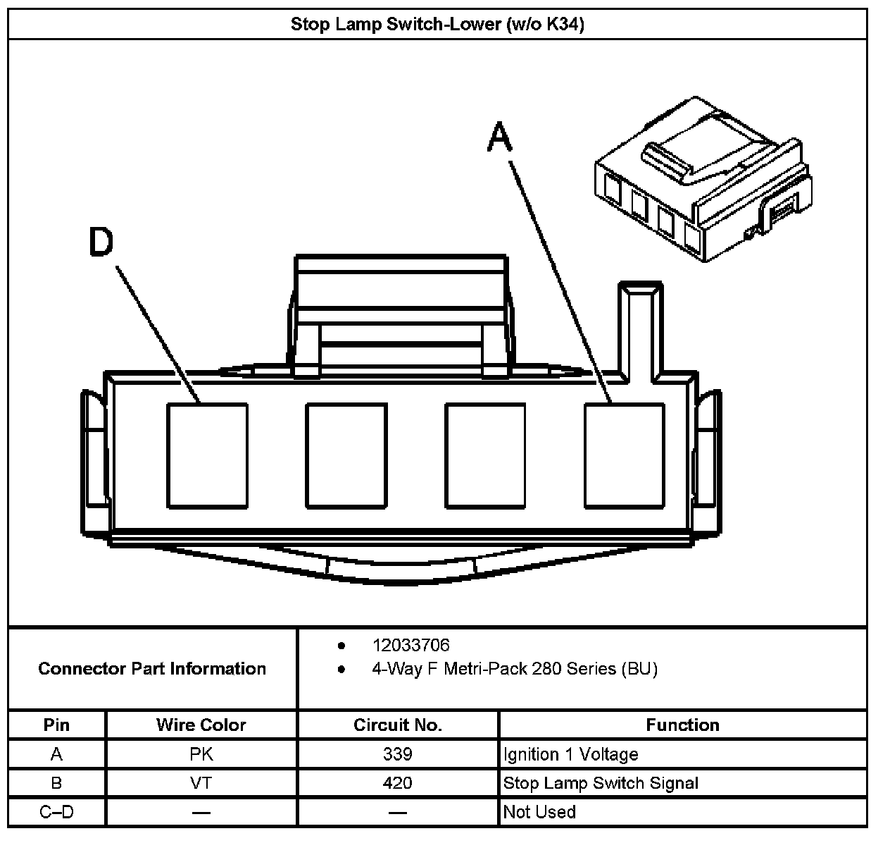 Stop Lamp Switch - Lower (without RPO Code K34):