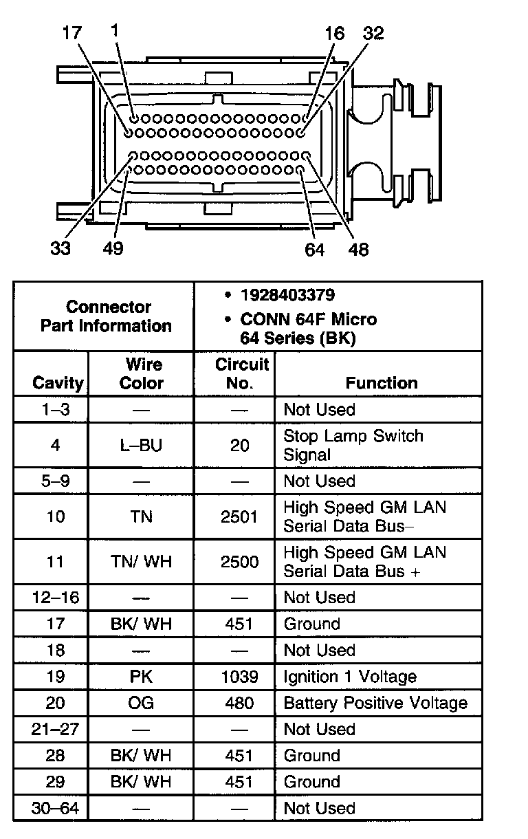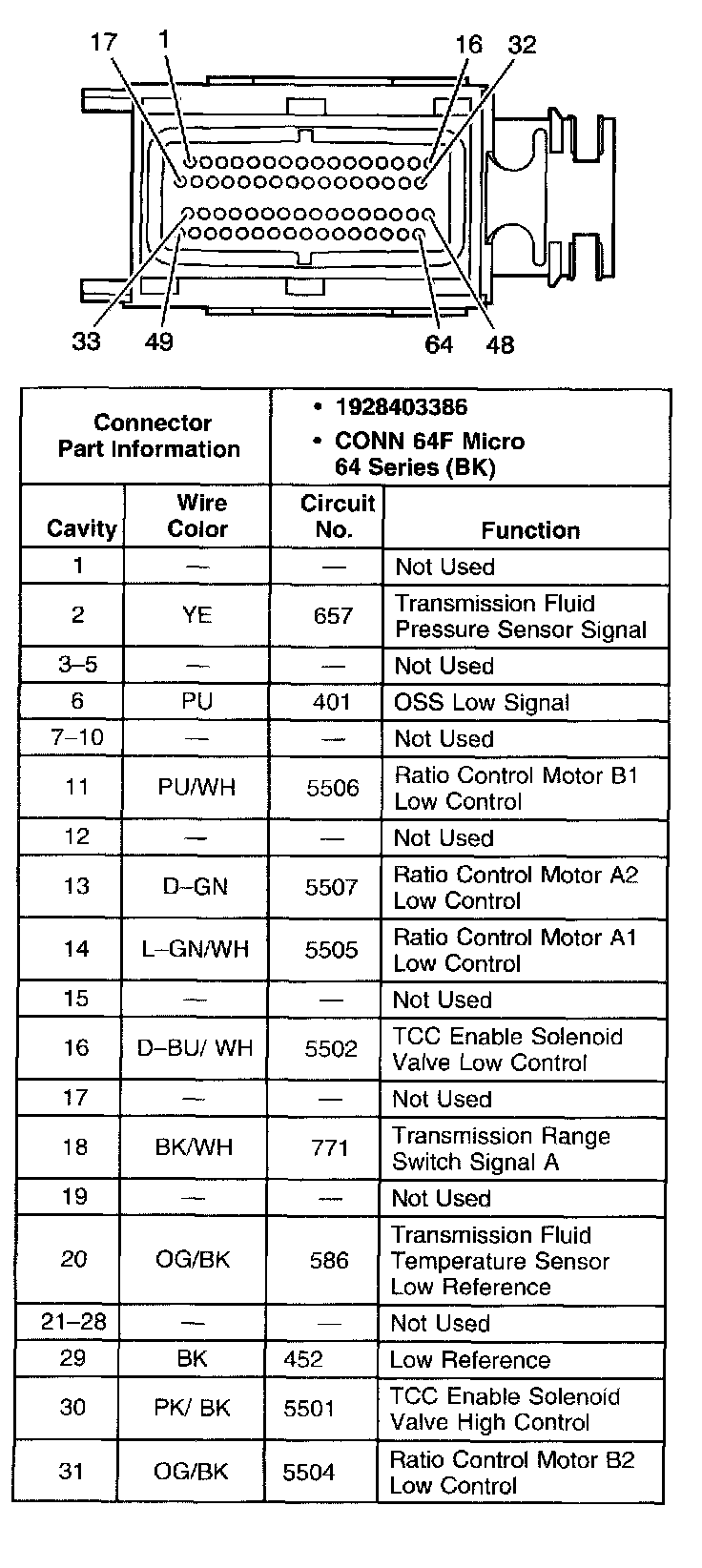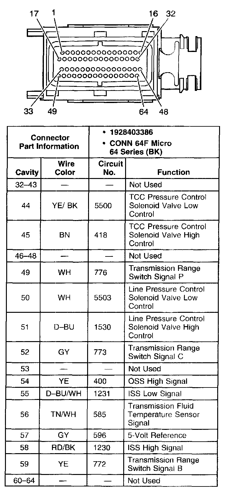 Automatic Transmission Related Connector End ViewsTransmission Control Module Harness 64-way C1 Connector