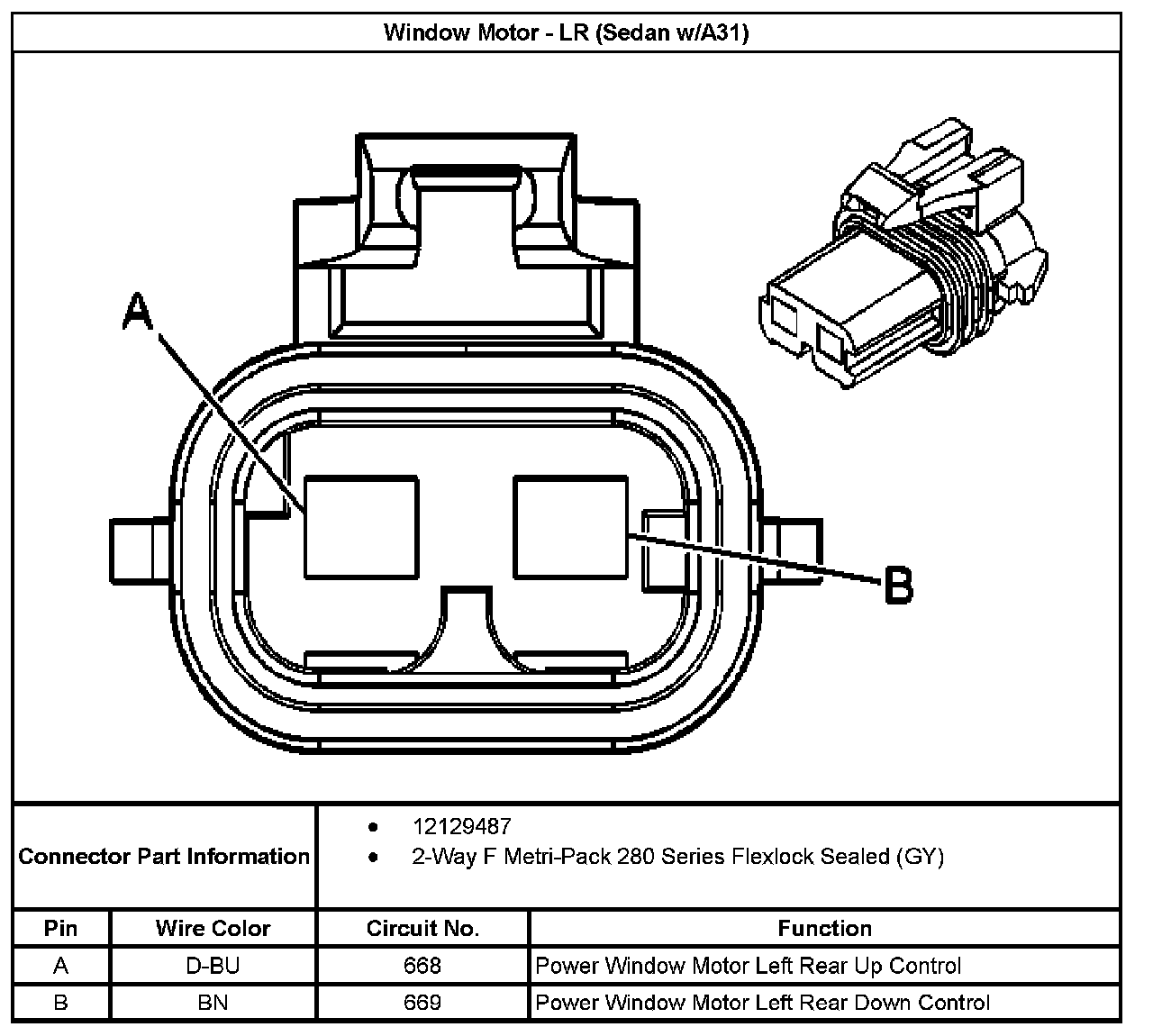Window Motor - LR (Sedan With RPO Code A31):
