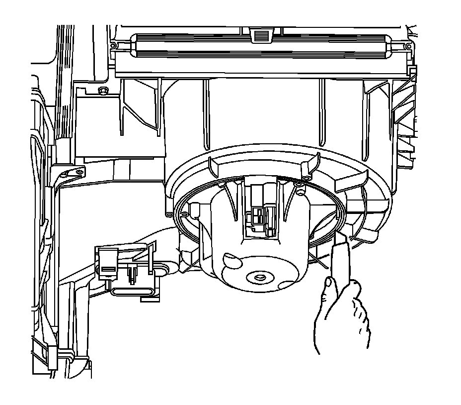 4. Release the blower motor retaining tab and remove the motor from the cup.