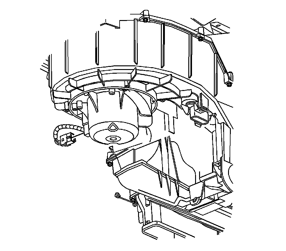 10. Push the center floor duct up while rotating rearward in the vehicle to install on the HVAC module.