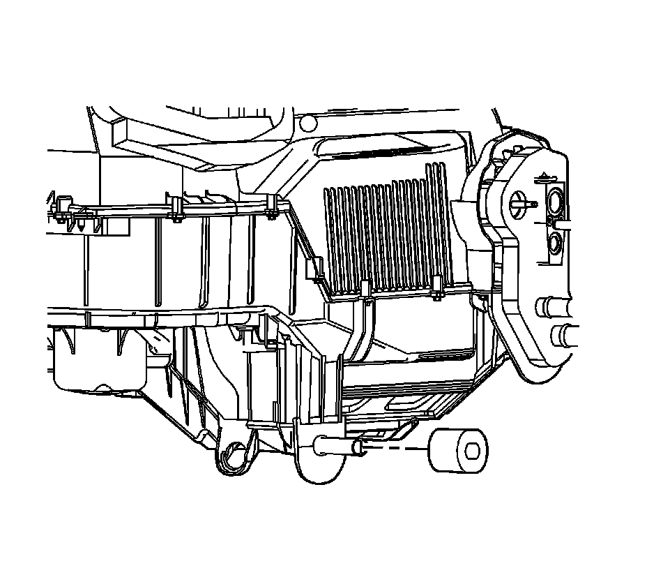 4. Place the HVAC module in the vehicle. Align the HVAC module drain tube and front of dash studs to the vehicle.