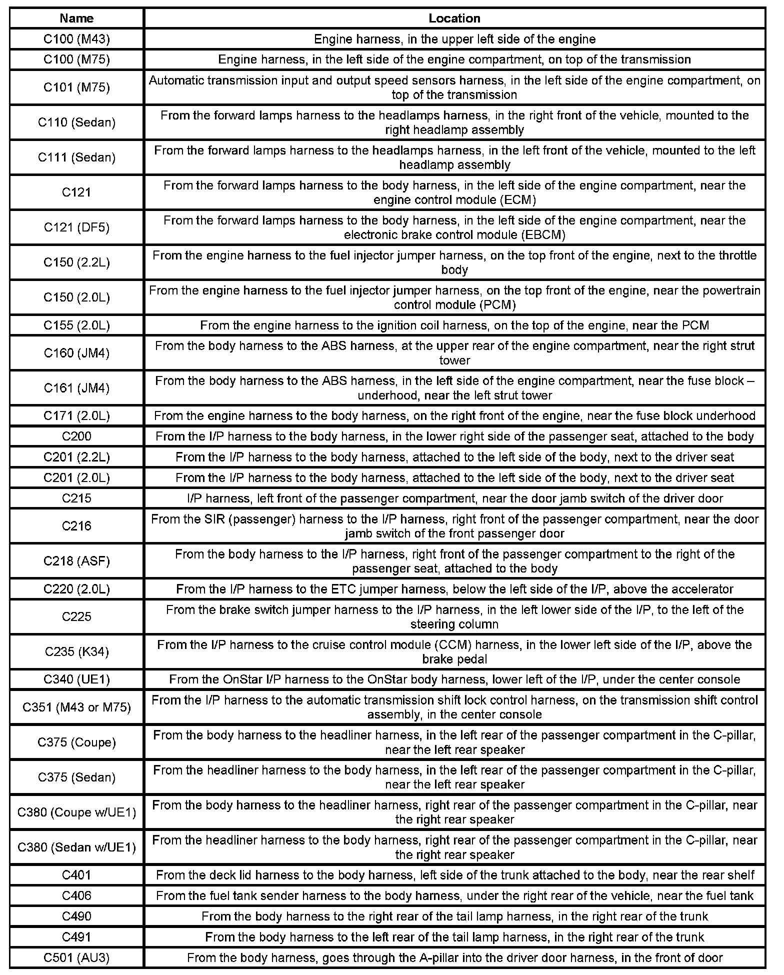 Connector Locations