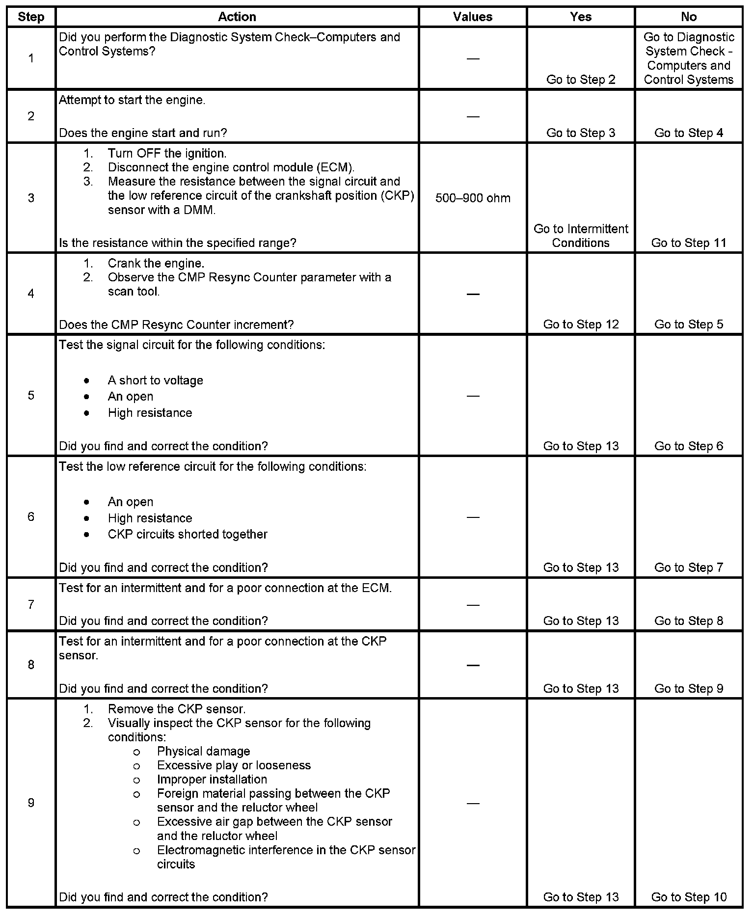 3. This step determines an intermittent internally in the crankshaft position sensor.