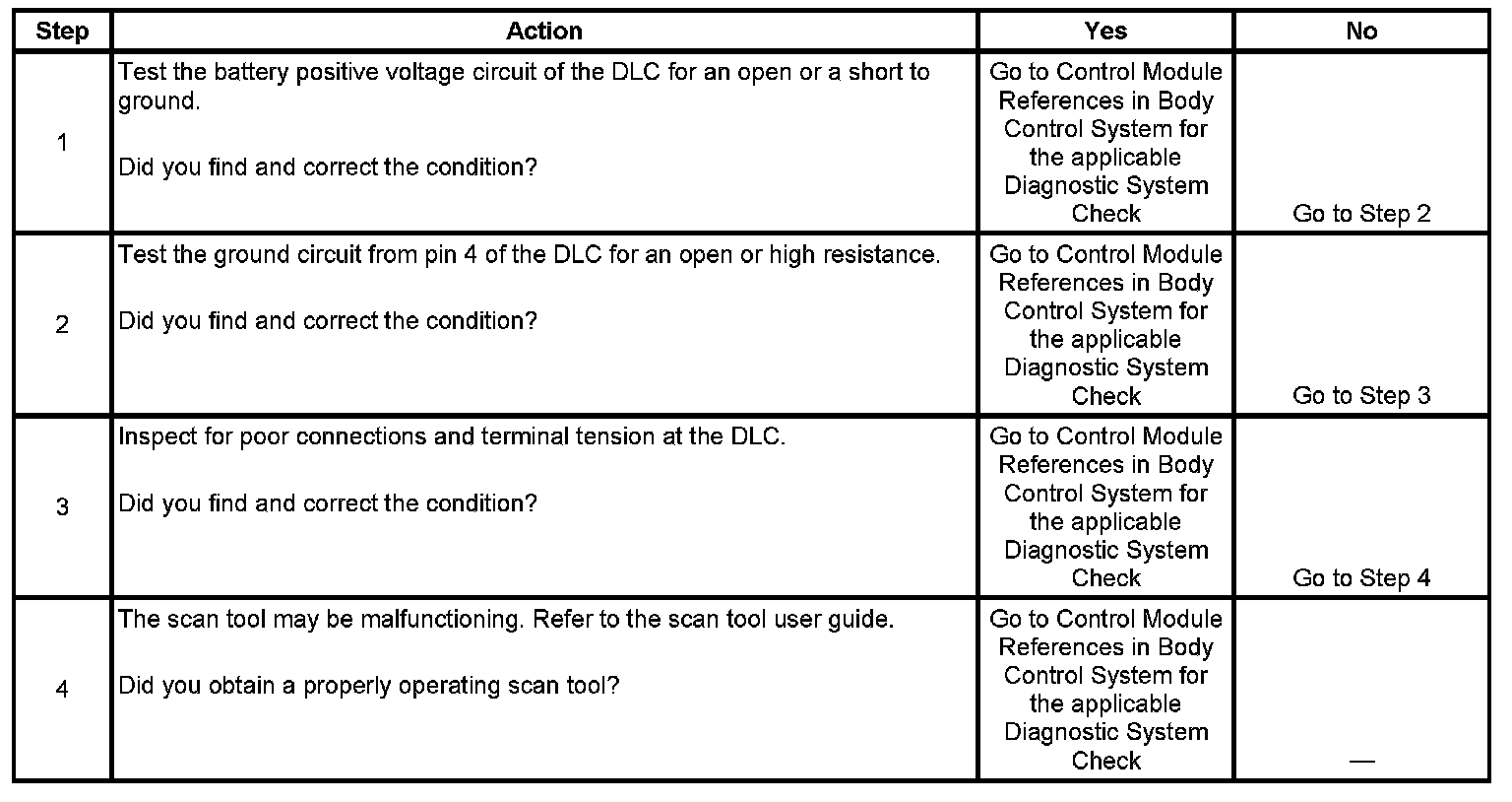 4. If the battery positive voltage and ground circuits of the DLC are functioning properly. The malfunction must be due to the scan tool.