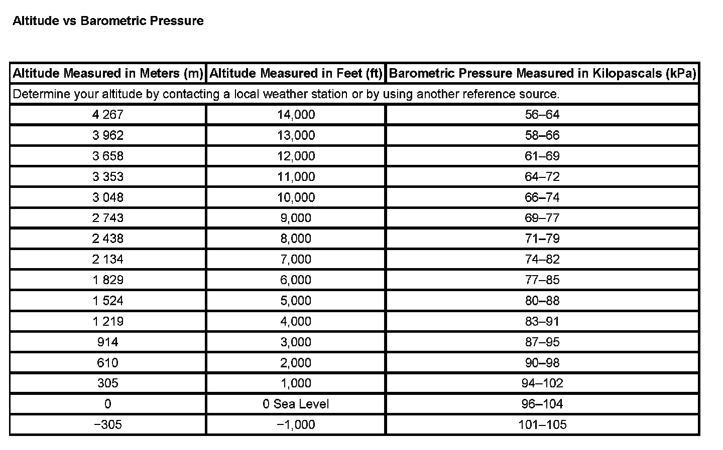 Pressure, Vacuum and Temperature Specifications