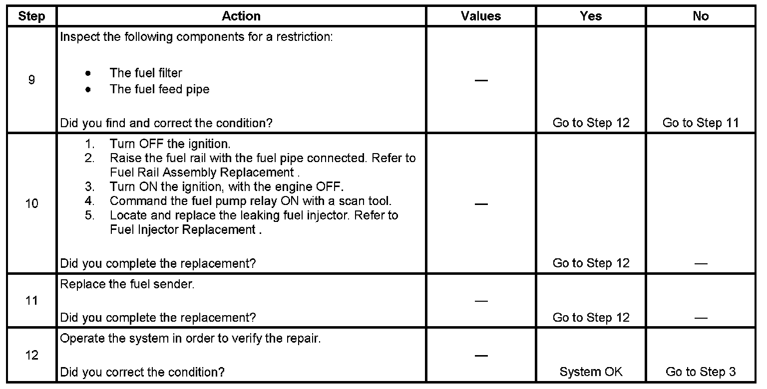 The control module enables the fuel pump relay when the ignition switch is turned ON. The control module will disable the fuel pump relay within two seconds unless the control module detects ignition reference pulses. The control module continues to enable the fuel pump relay as long as ignition reference pulses are detected. The control module disables the fuel pump relay within two seconds if ignition reference pulses cease to be detected and the ignition remains ON.