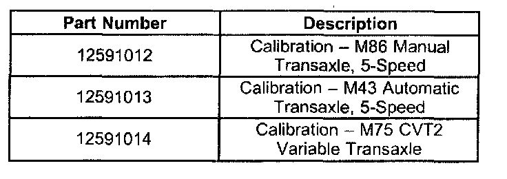^ If the current ECM calibration ID is not the same or greater than the calibration listed in the "Calibration Information" table, then the ECM should be reprogrammed with the latest available service calibration. Refer to "Reprogramming ECM" in the Service Procedure section of this bulletin.
