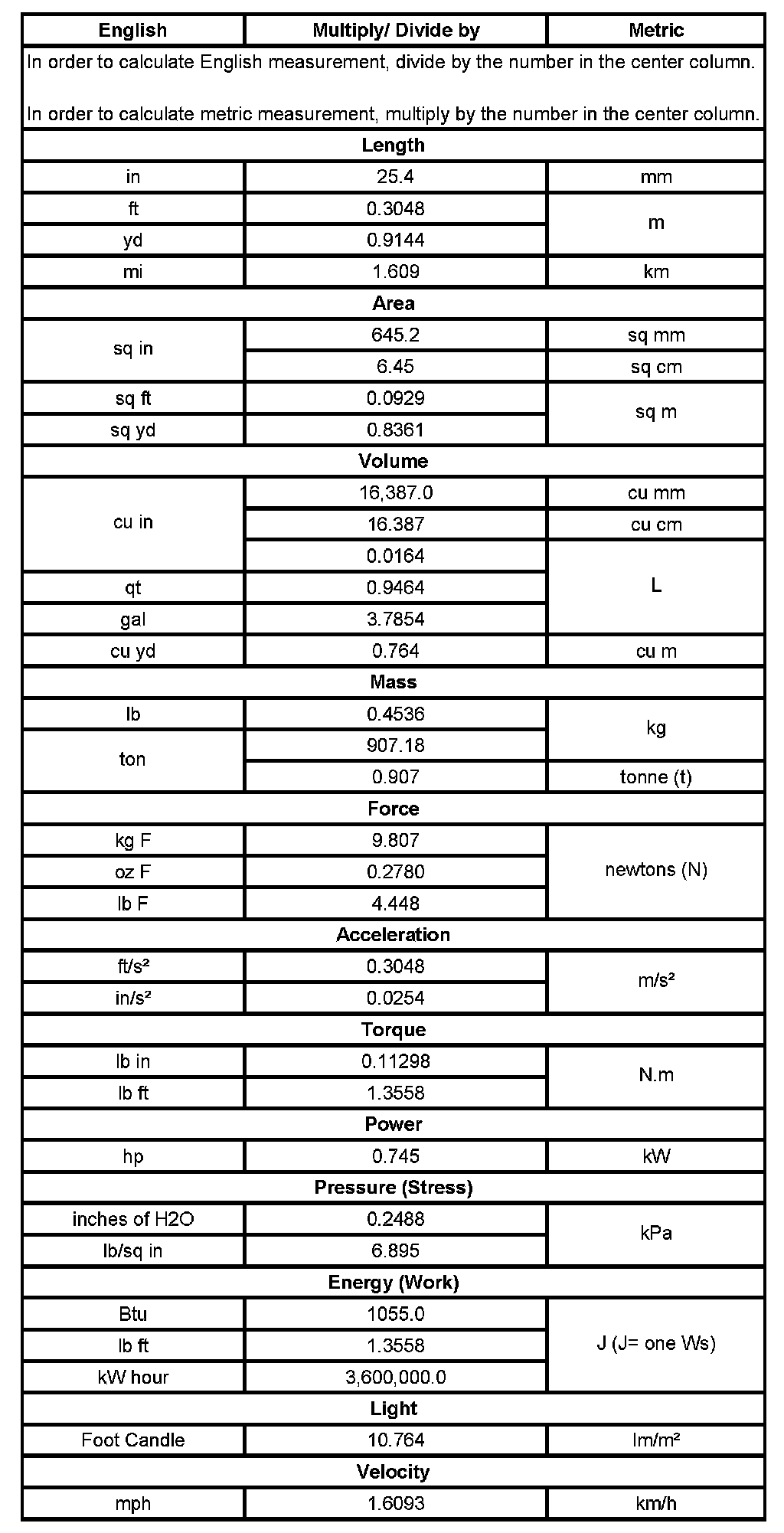 Conversion-English/Metric