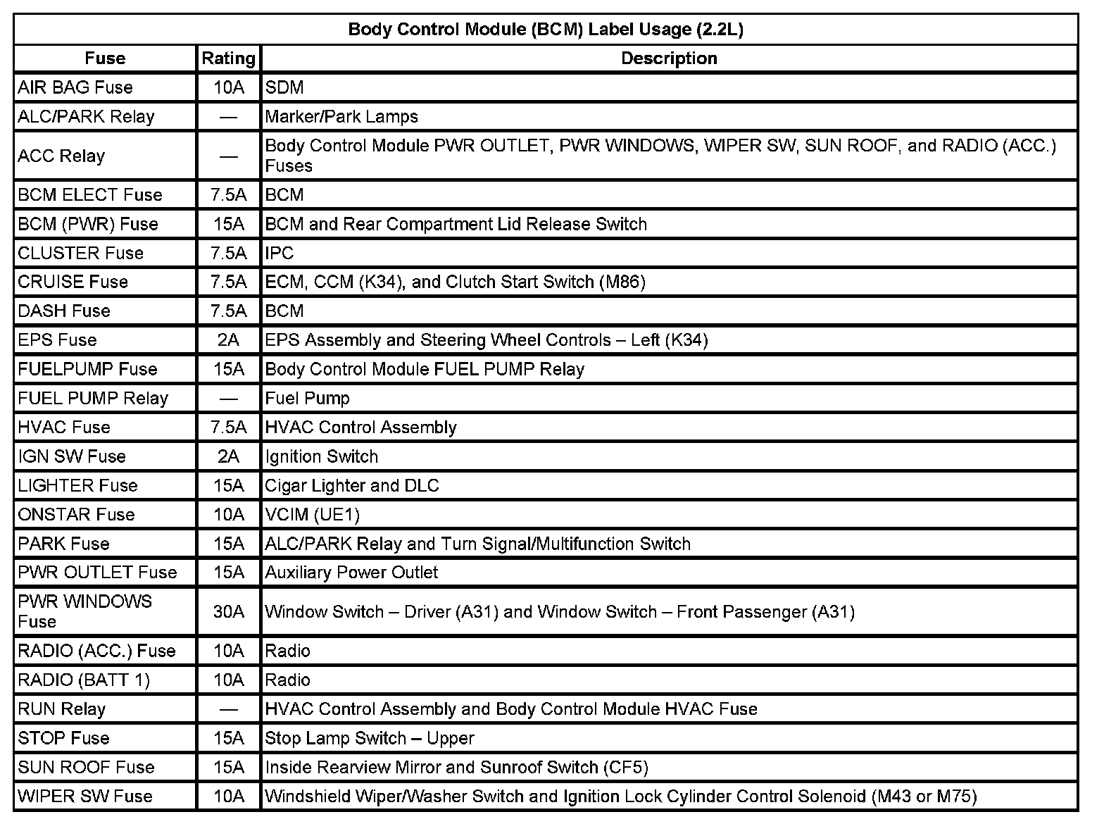 Body Control Module (BCM) Label