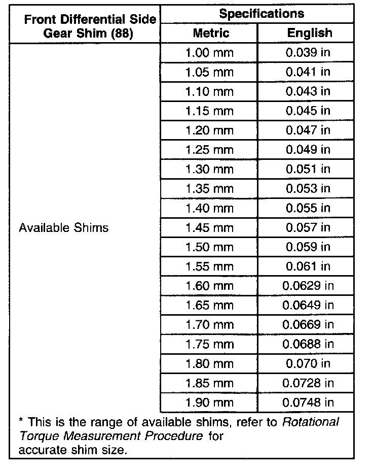 Shim Size Specifications