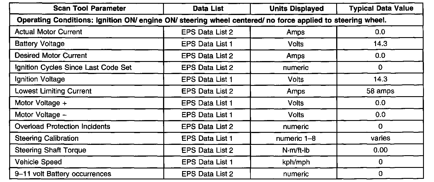 Scan Tool Data List