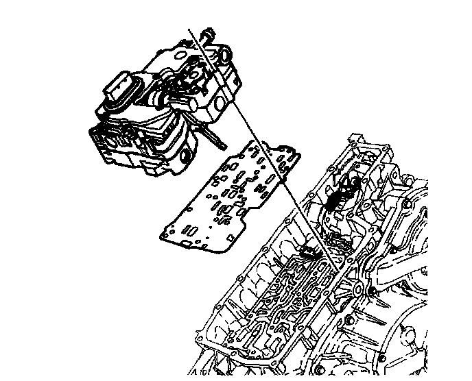 Control Valve Body Assembly InstallationNotice: The case cover assembly must be installed before installing the control valve body assembly. Failure to follow this instruction may result in damage to the variable ratio control lever.