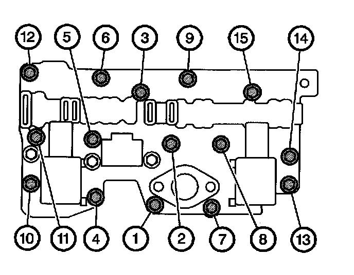 ^ Tighten the 15 black bolts in three separate steps in the sequence shown.