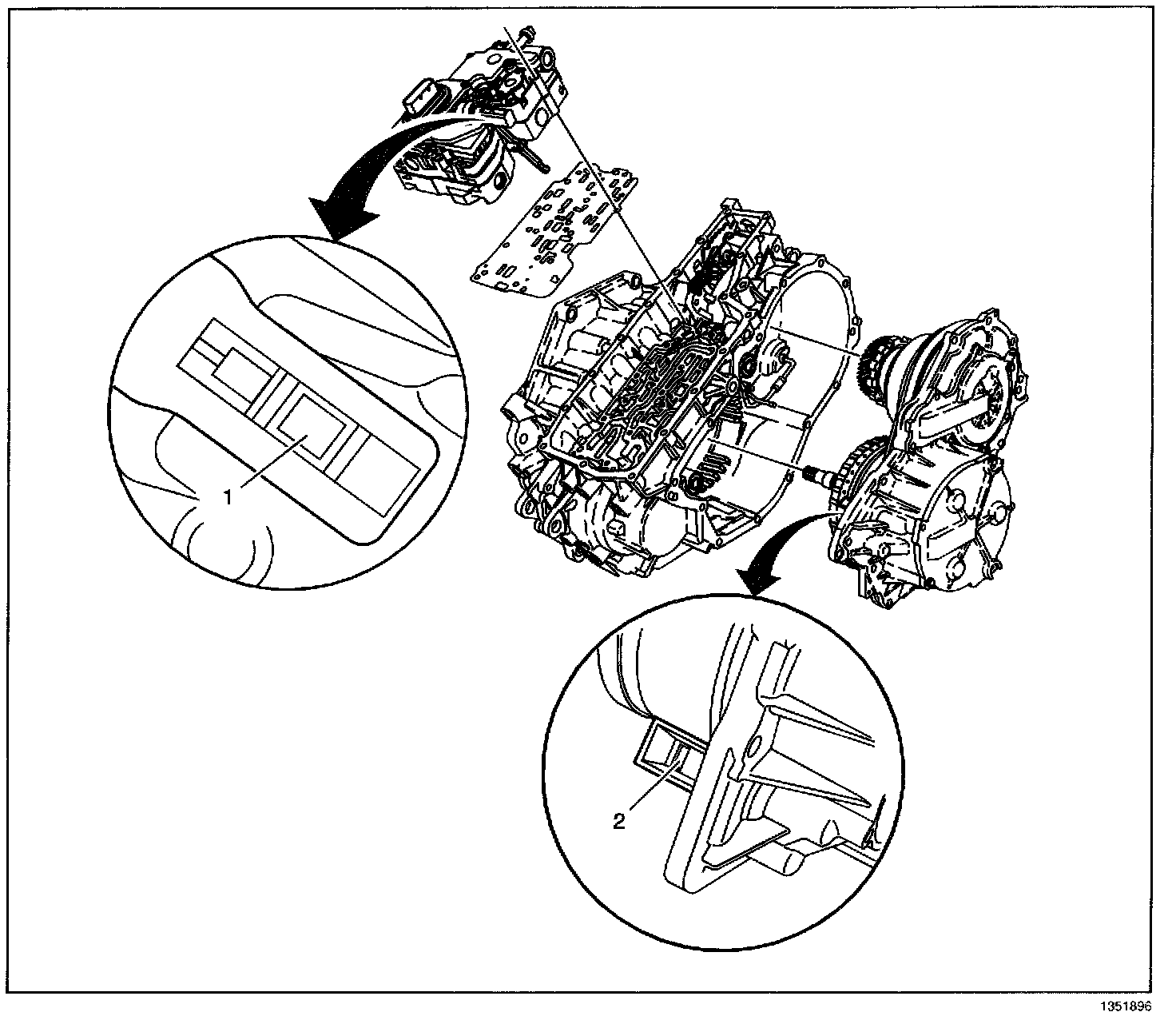 When reinstalling the valve body assembly, one end of the variable ratio control lever must be properly positioned in the ratio control motor pintle (location # 1), and the opposite end of the lever must be properly positioned in the variable drive pulley follower (location # 2), which is located in the case cover. For vehicles with the condition described above, follow the procedure in this bulletin.
