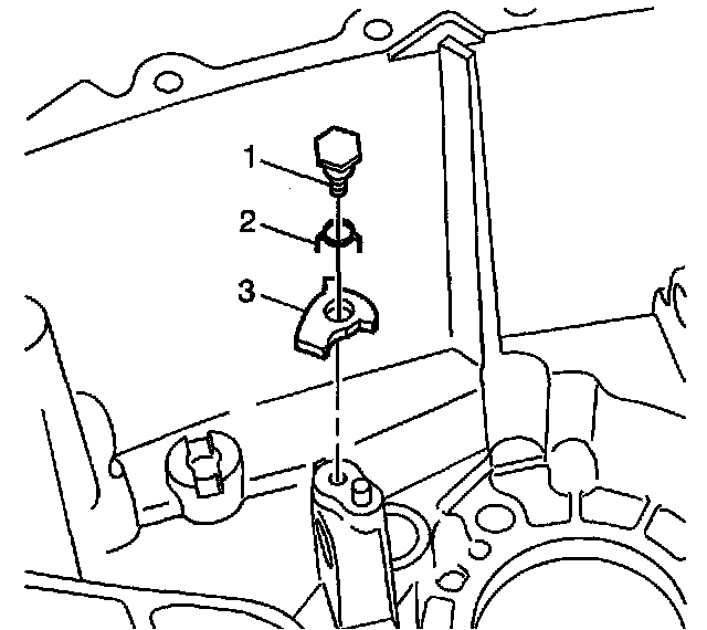 5. Install the reverse lockout lever (3), spring (2), and the bolt (1) to the transmission housing, if equipped.