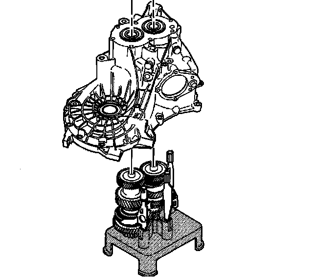 19. Install the housing onto the shift forks and the shafts on to the J 44375. Line up the shift forks and the shafts with the housing.