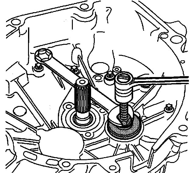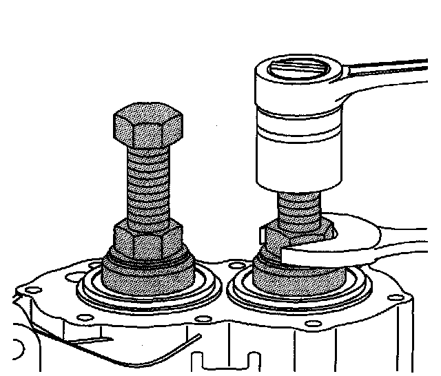 23. Install NEW input and output shaft bolts while holding the transmission into 4th and 5th gear in an upward direction.