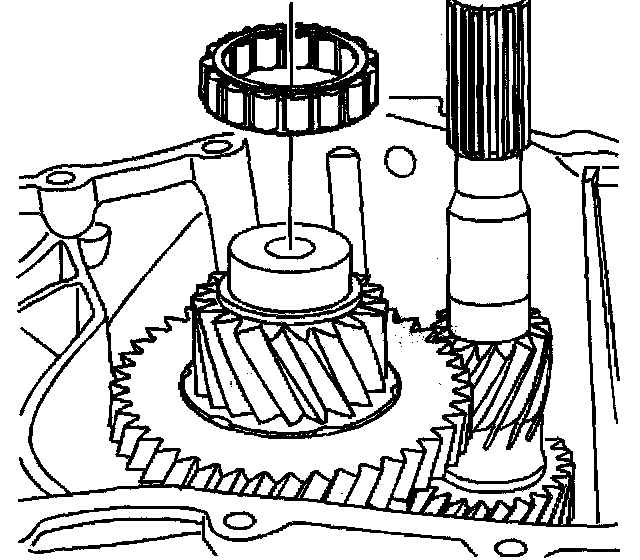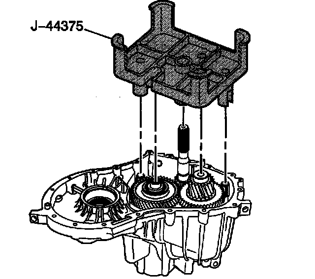 31. Remove the J 44375 from the gear shafts and the shift forks.