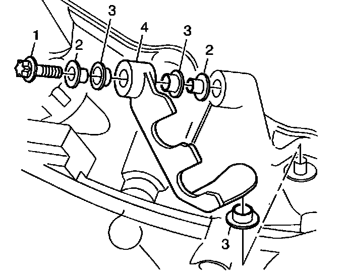 62. Install the shift cable bracket (4), the isolators (3), the spacers (2) and the bolt (1).