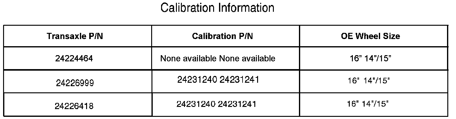 To correct this condition, reprogram the TCM with the new calibration (P/N 24231240 or 24231241), reset the transmission adaptives, relearn the TCM, and re-evaluate the vehicle following the service procedure in this bulletin.