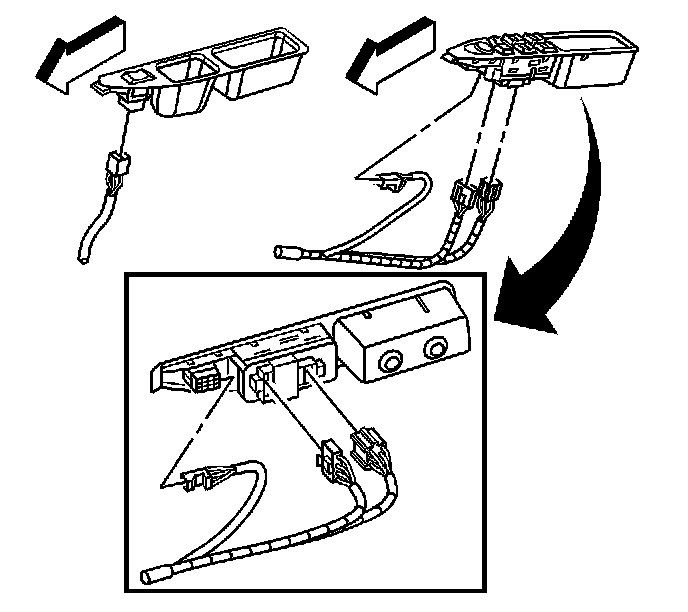 1. Insert the power window switch into the pull cup until the locking tabs engage.