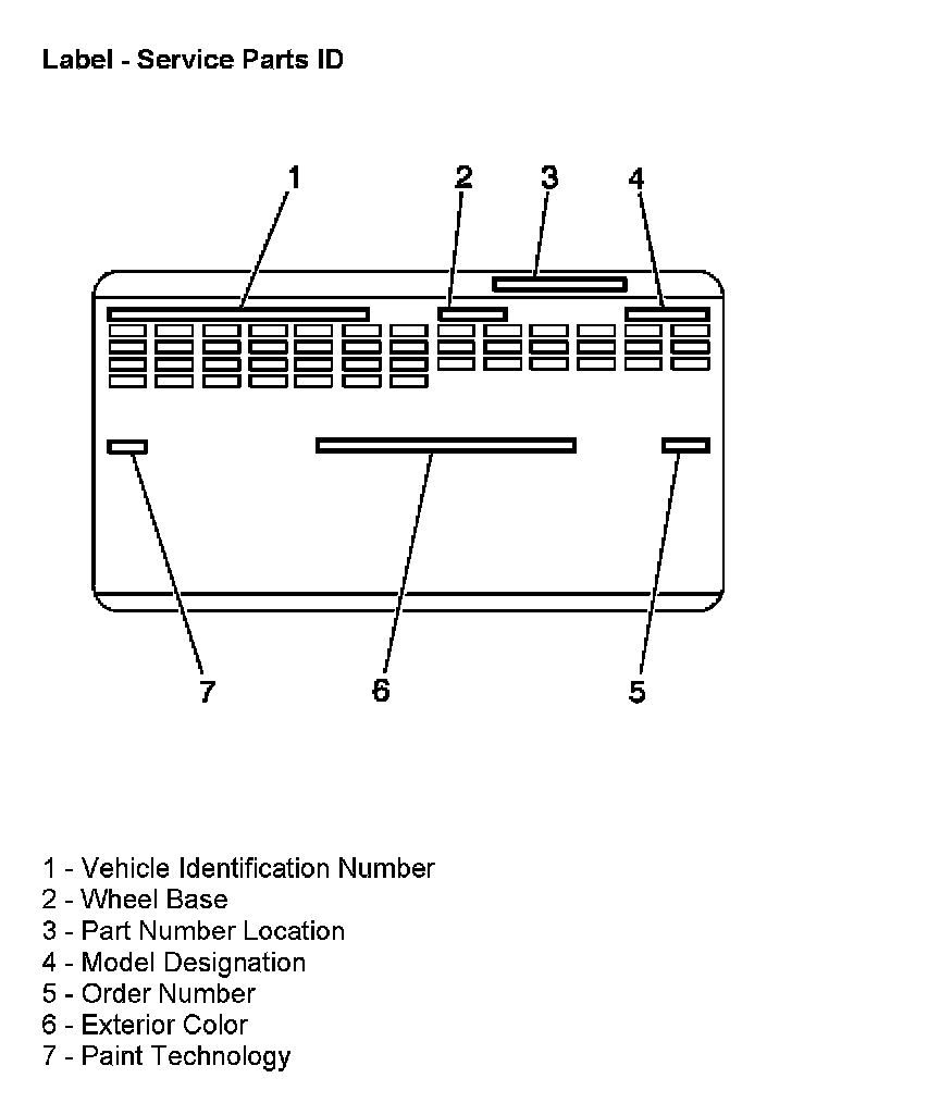 The service parts identification label is placed on the vehicle in order to help the service and parts personnel identify the vehicle's original parts and the vehicle's original options. The label is located on the spare tire cover.