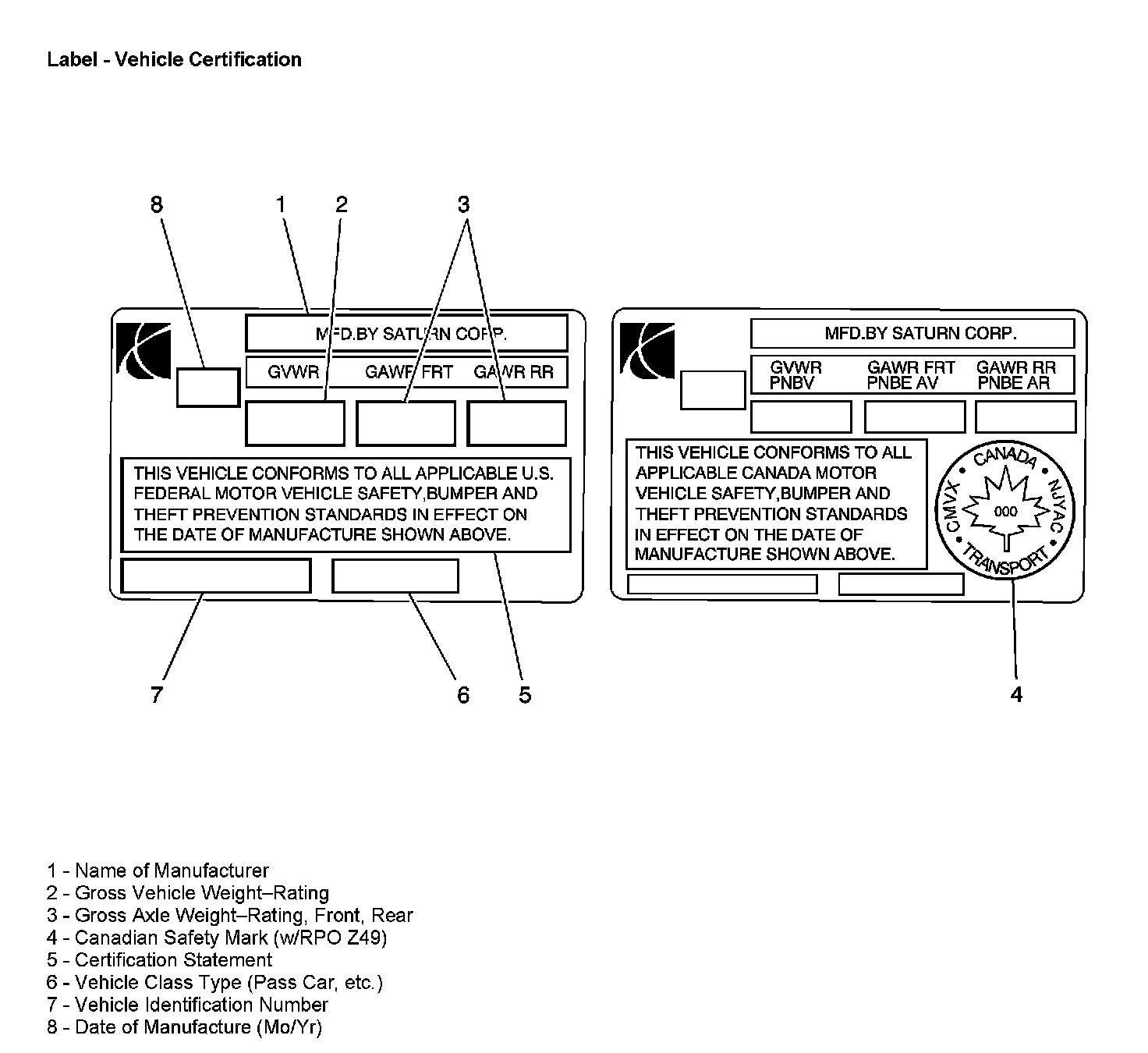 LABEL - VEHICLE CERTIFICATIONLabel - Vehicle Certification: