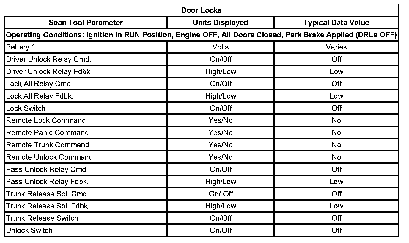 Scan Tool Data List - Door Locks