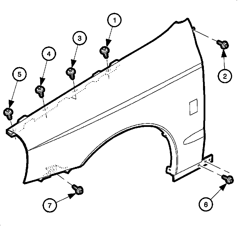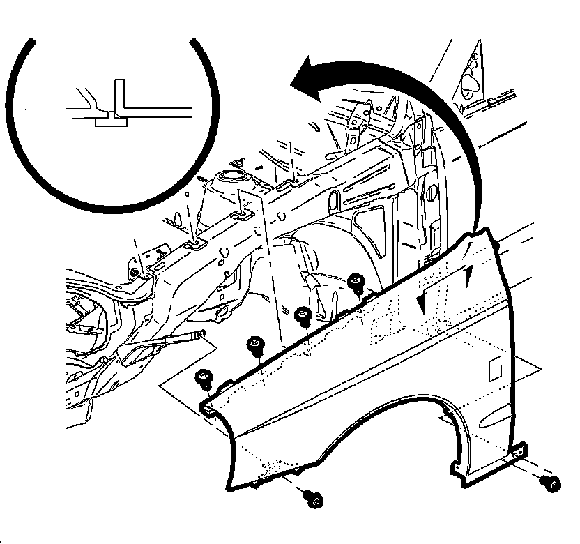 6. Release the fascia to fender attaching tab and remove the fascia.