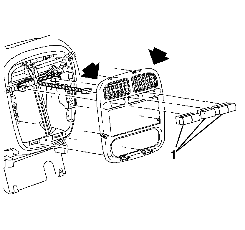 1. Insert a small flat-bladed tool between the top corners of the trim panel and the I/P. Pry out the trim panel.