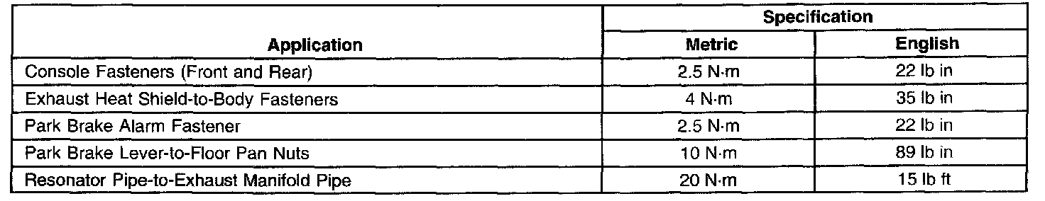 Parking Brake System: Specifications