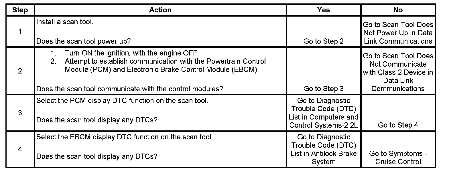 2. Lack of communication may be due to a partial malfunction of the class 2 serial data circuit or due to a total malfunction of the class 2 serial data circuit. The specified procedure will determine the particular condition.