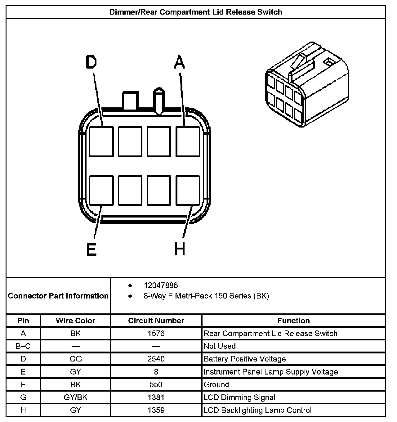 Dimmer/Rear Compartment Lid Release Switch: