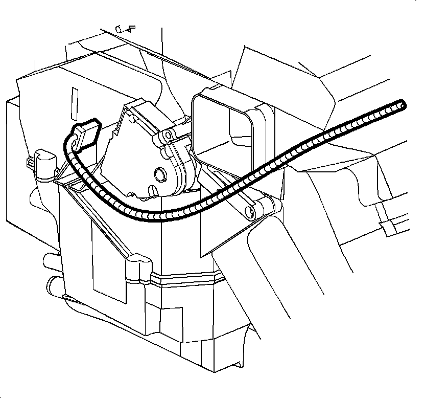 IMPORTANT: The lower heater pipe clamp hinge fits into the tab on the heater core retainer strap.