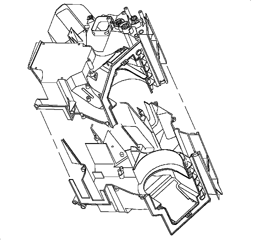 19. Turn the module right side up, and use a razor blade to cut the defroster/vent seal, and blower motor opening seal at the center line.