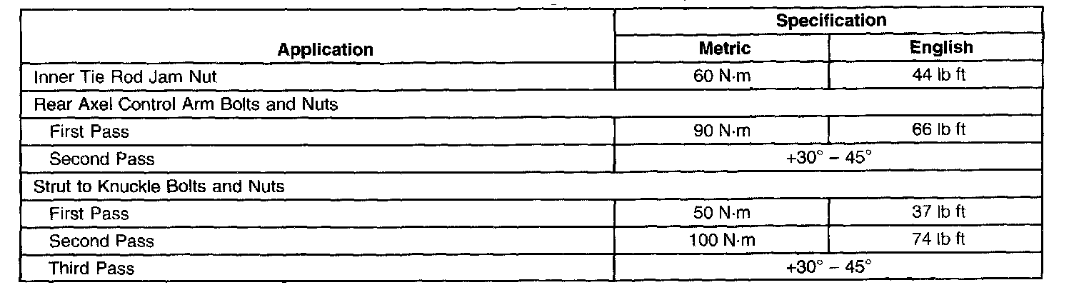 Fastener Tightening Specifications:
