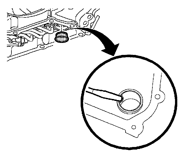 13. Remove the filter neck seal from the transaxle case and discard.