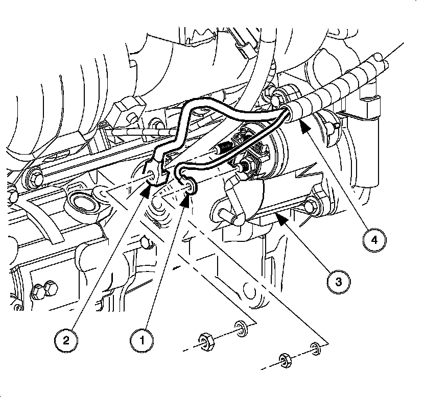 - Tighten the starter solenoid harness nuts (small) to 3 N.m (27 lb in).