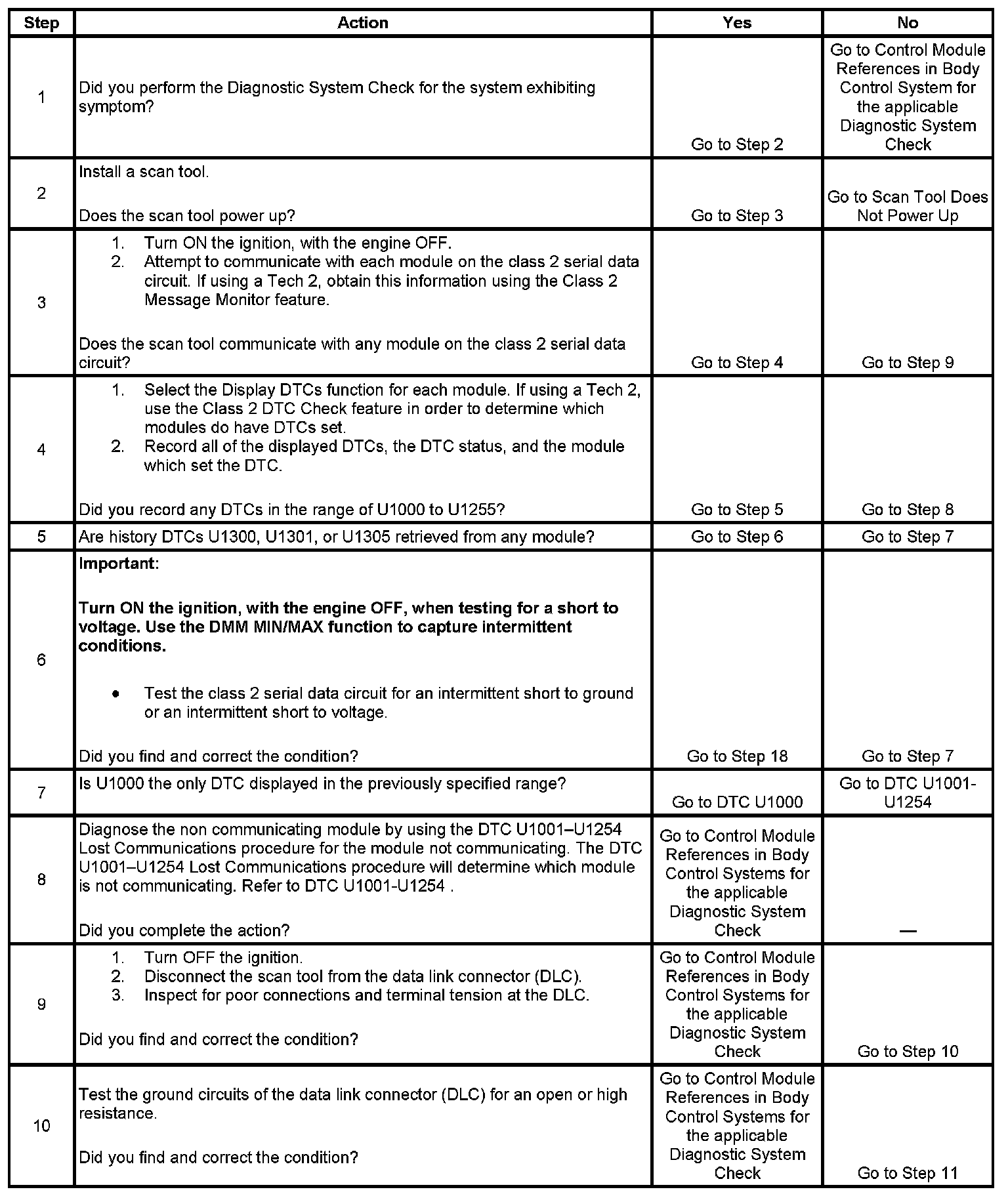 - A class 2 serial data circuit shorted to ground. A history U1300 will set in all modules. Refer to DTC U1300, U1301, or U1305.