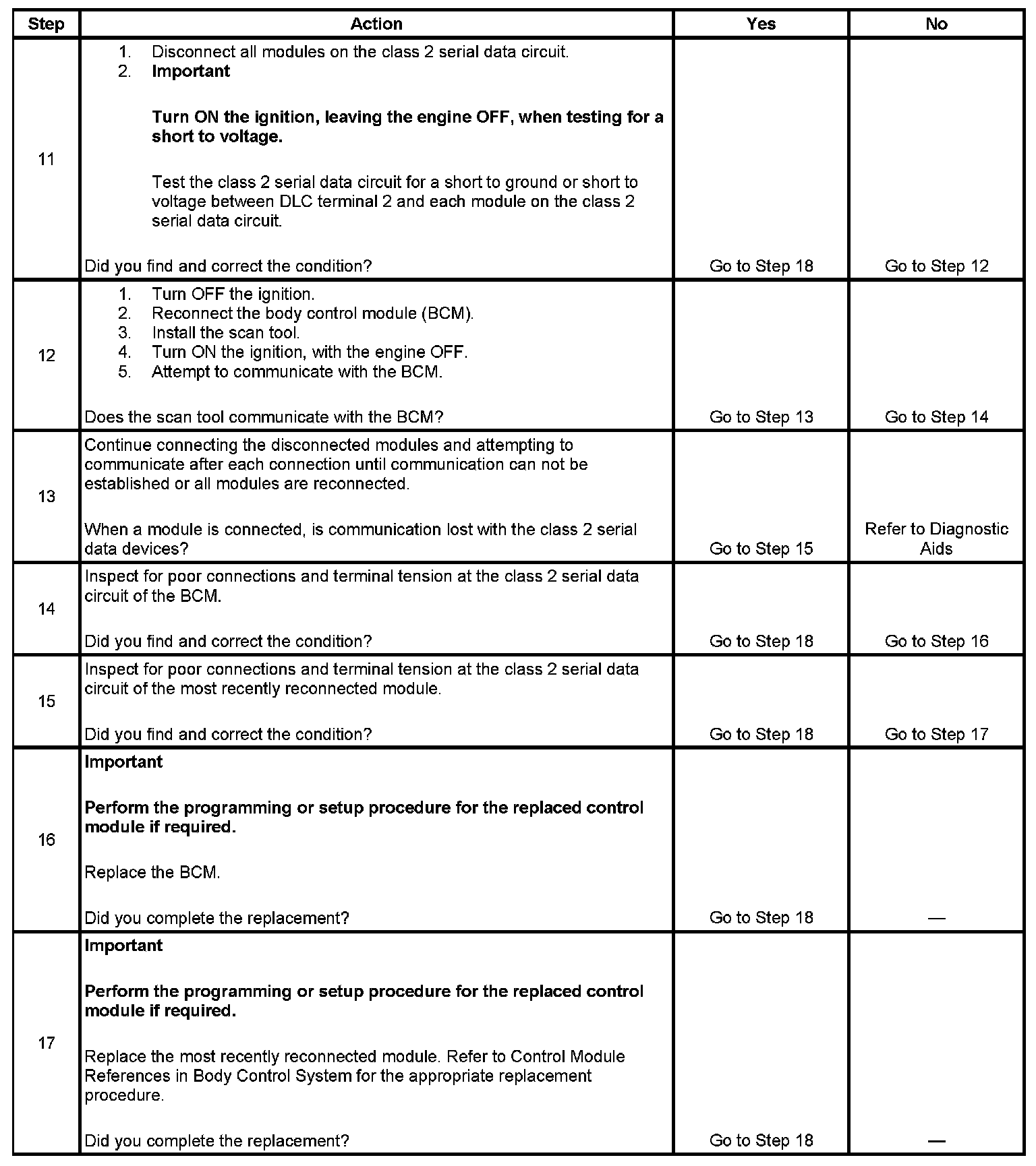 3. A partial loss of communication in the class 2 serial data circuit uses a different procedure than a total loss of communication of the class 2 serial data circuit.